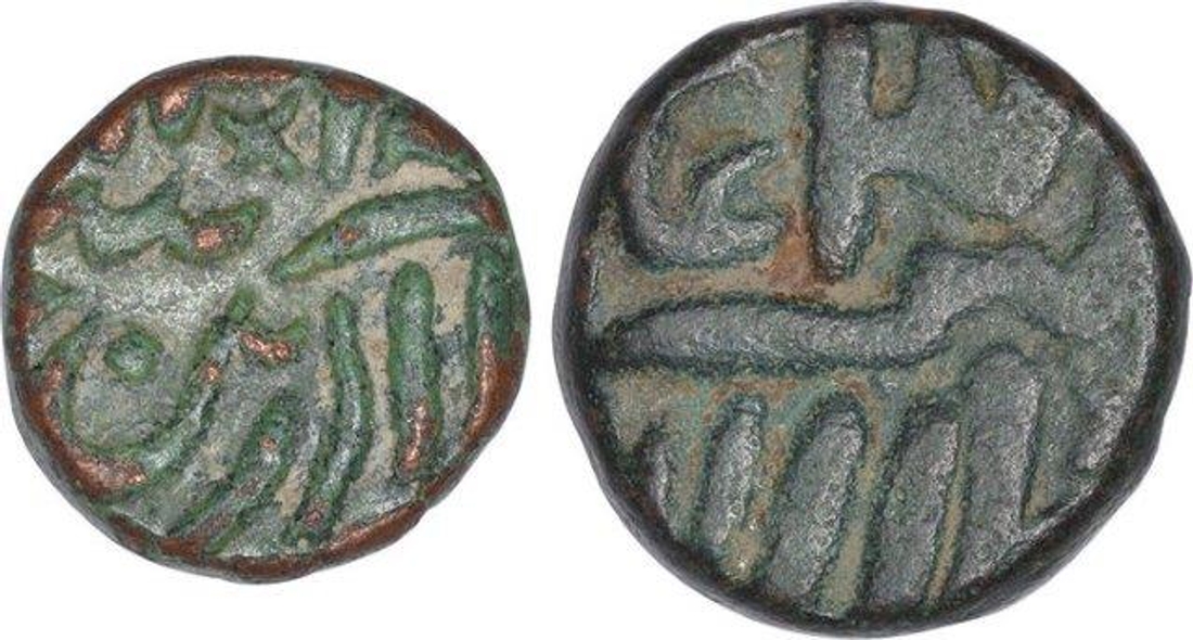 Akbar, Delwara, Copper 1/4 & 1/2 Dam, Obv: akbar badshah ghazi, Rev: ilahi date and zarb, 4.01g, 8.05g, 13.00mm, 15.57mm, about very fine.