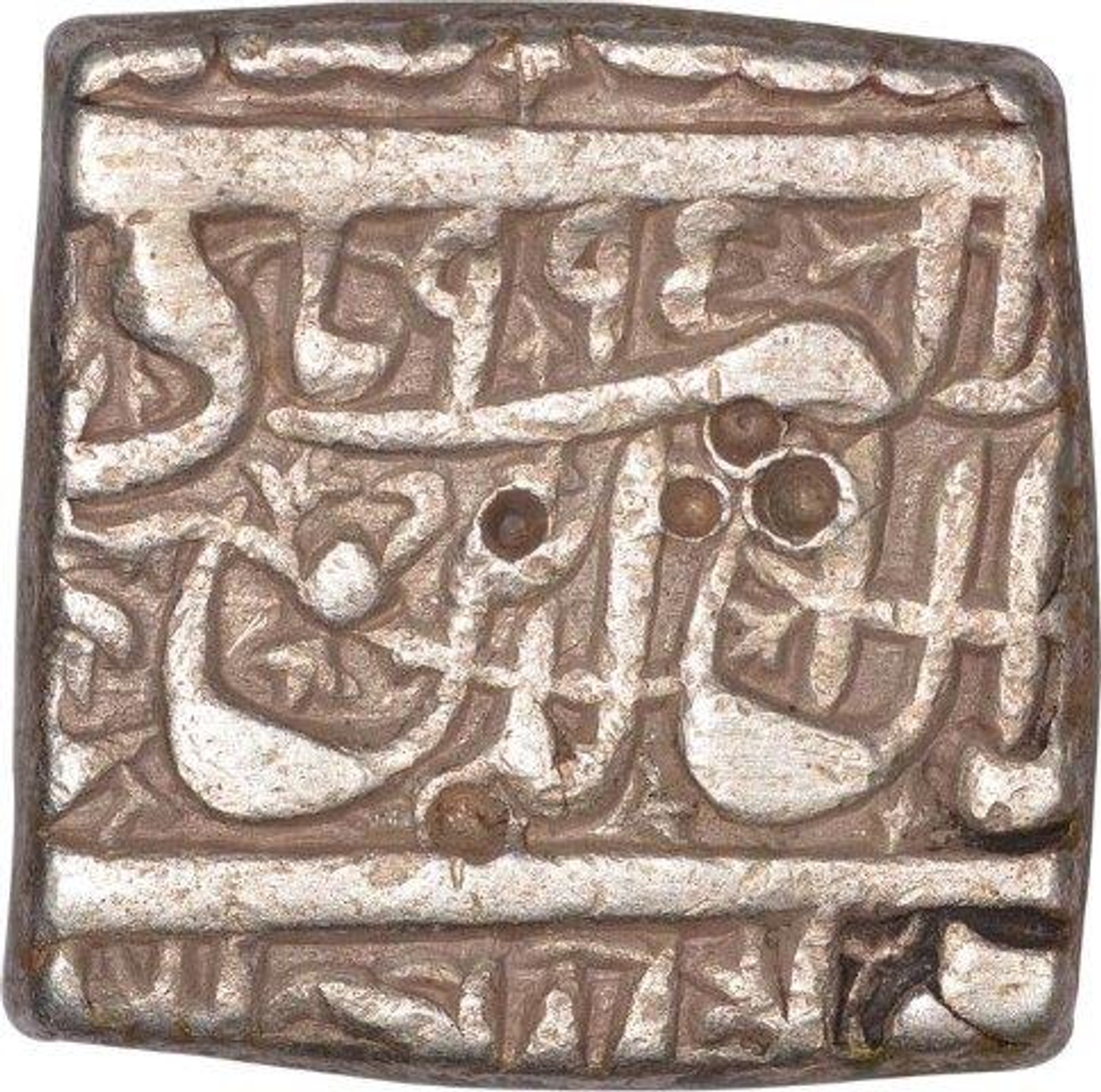 Silver Square One Rupee Coin of Akbar of Ahmadabad Mint. Silver Square One Rupee Coin of Akbar of Ahmadabad Mint.