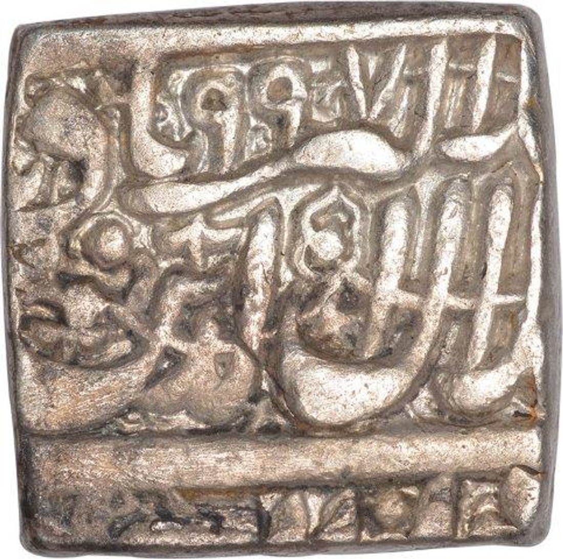 Silver Square One Rupee Coin of Akbar of Kalima Type. Silver Square One Rupee Coin of Akbar of Kalima Type.