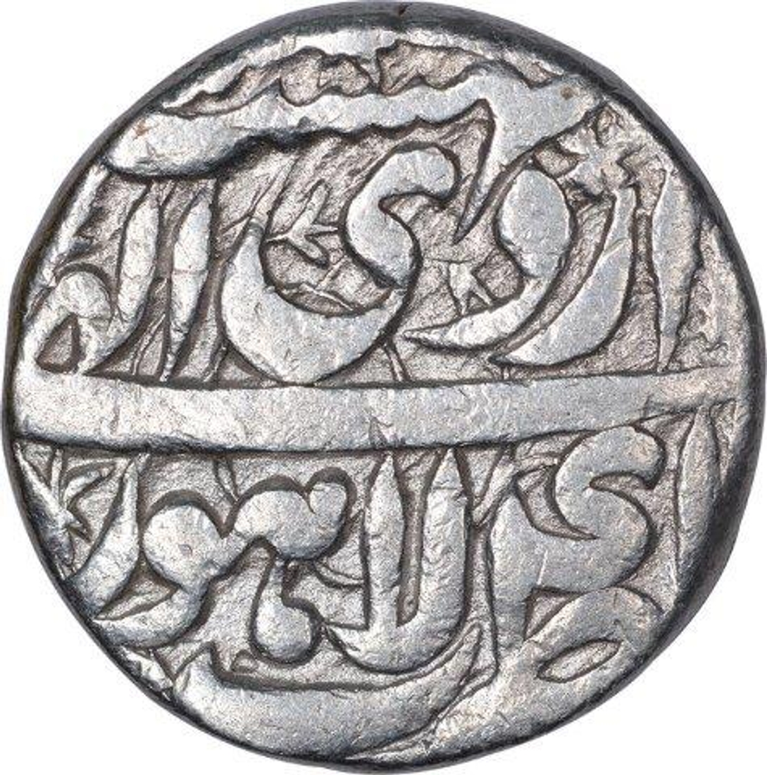 Lot # 216 - Silver One Rupee Coin of Akbar of Lahore Mint of Ardibihisht Month.