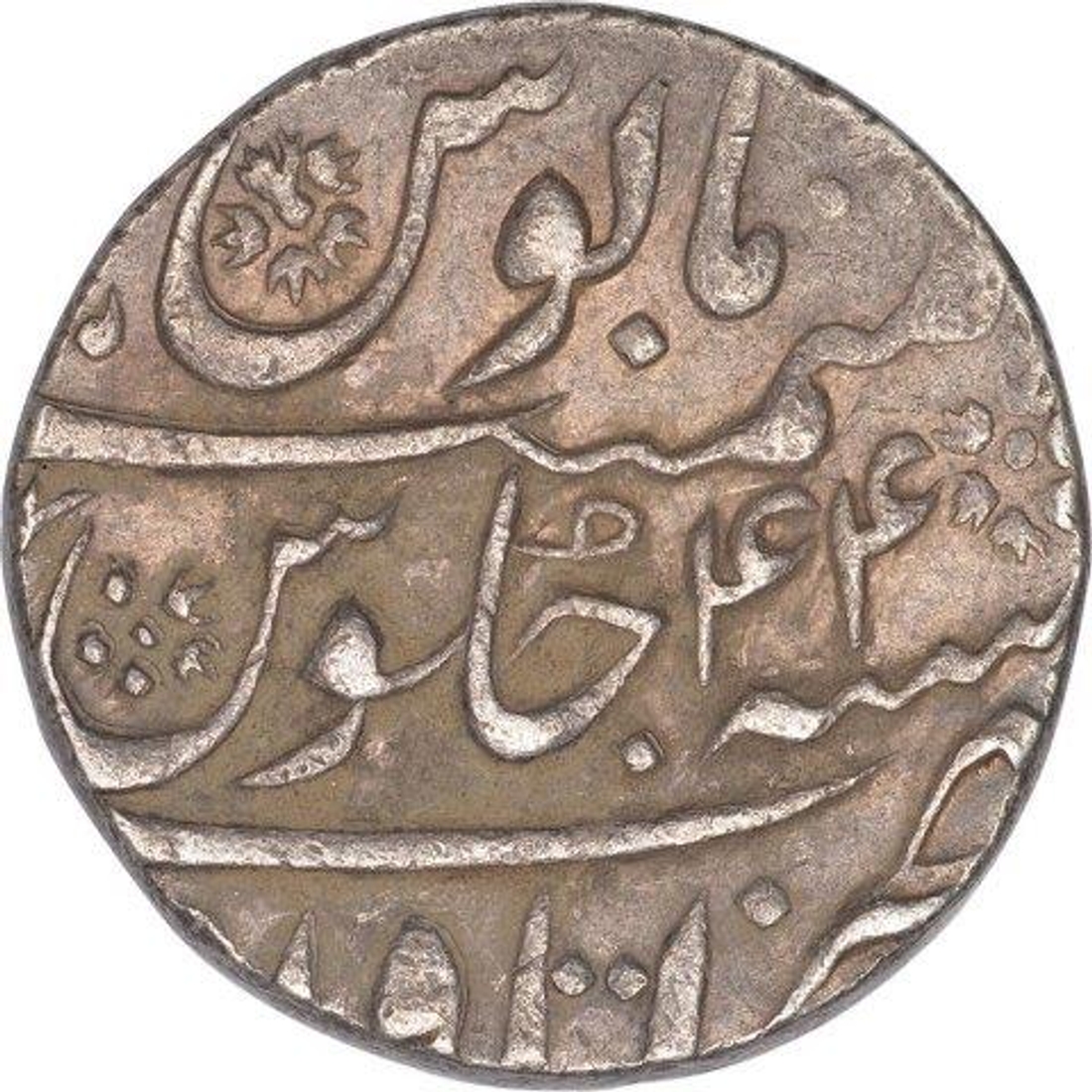 Aurangzeb Alamgir, Itawa Mint, Silver Rupee, AH 1112/44 RY, Obv: "badr munir" couplet, Rev: sana julus zarb at bottom, 11.55g, 23.98mm, unlisted type, about very fine.