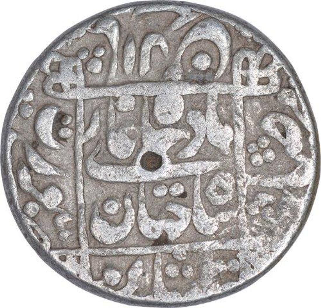 | Full Description: Shah Jahan, Surat Mint, Silver Rupee, AH 1047, Obv: kalima shahada around four khalifas name, Rev: saheb-e-qiran sani shahjahan badshah ghazi, mint at left, 11.45g, 22.67mm, (KM # 235.23), about very fine. | ||||