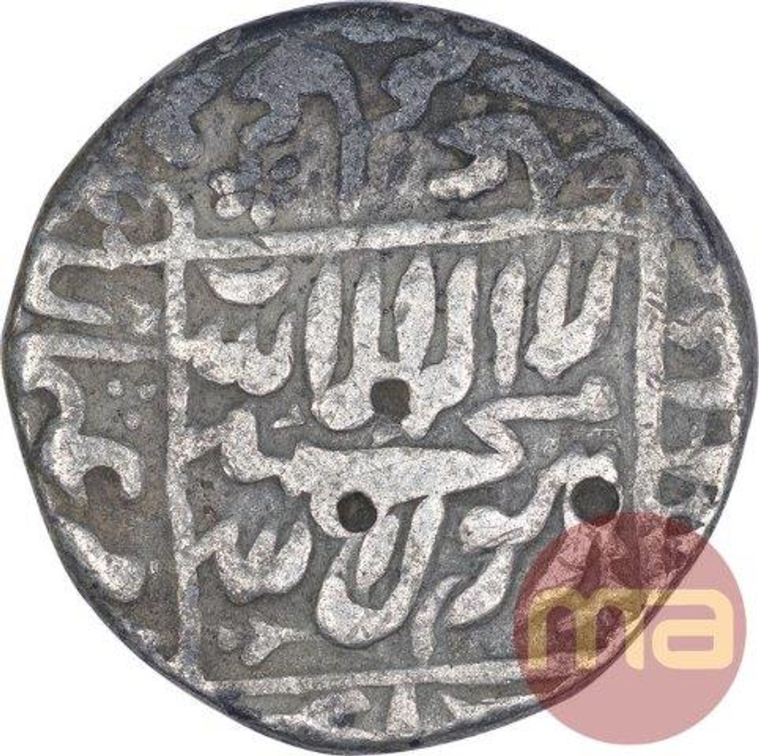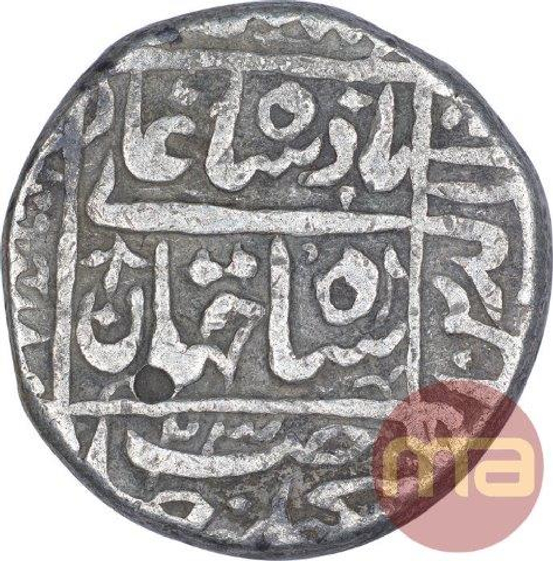 Shah Jahan, Ujjain Mint, Silver Rupee, 23 RY, Obv: kalima shahada around four khalifas name, Rev: saheb-e-qiran sani, shah jahan badshah ghazi, 10.46g, 22.27mm, (KM # 235.24), about very fine.