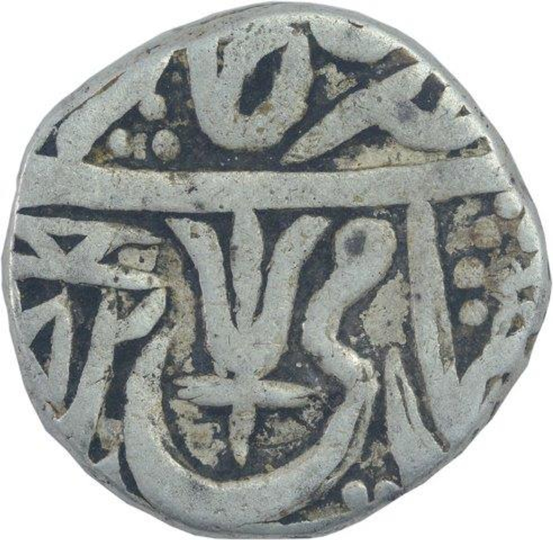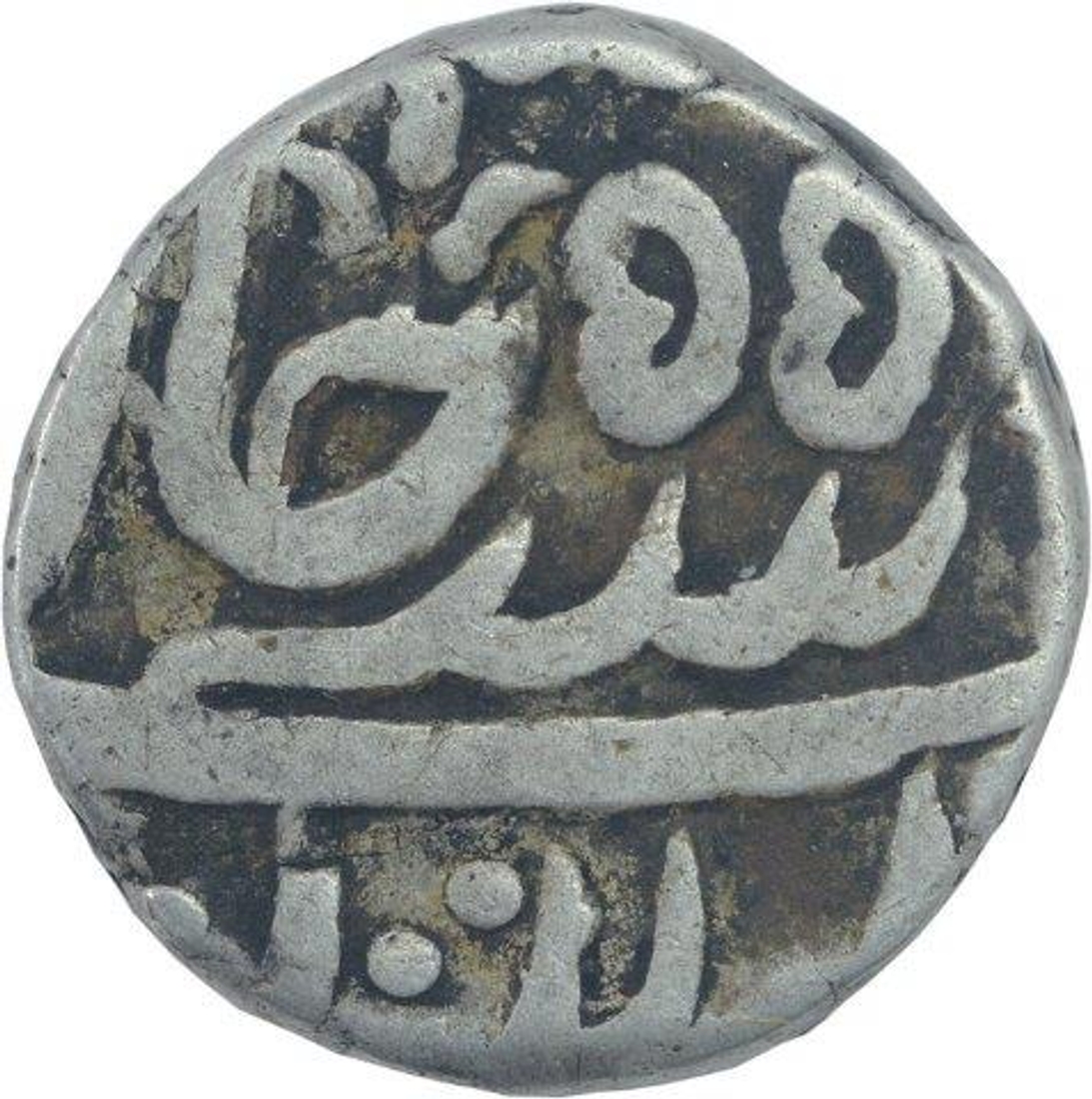Maratha Confederacy, Jalaun Mint, Silver Rupee, 55 RY, In the name of Shah Alam II, Obv: "saye-e-fazle elah" couplet, battle axe & trident mark, Rev: san julus zarb, 10.68g,18.21mm, (KM # 268), about very fine.