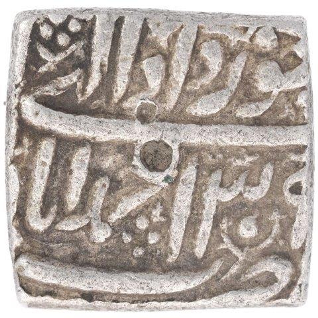 Akbar, Ahmadabad Mint, Silver Square Rupee, 39 RY, Month Khurdad, Obv: jalla jalalahu allahu akbar, Rev: persian month and date, tiny test mark on single side, 11.37g, 17.33 x 17.18mm, (KM # 88.1), about very fine.