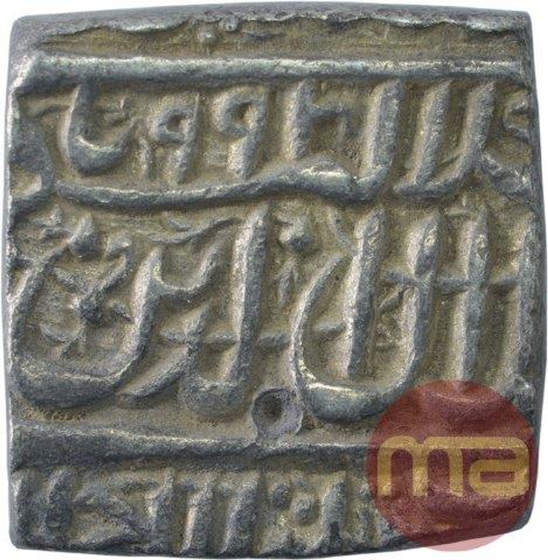Akbar, Ahmadabad Mint, Silver Square Rupee, AH 992, Obv: kalima shahada around four khalifas name, Rev: akbar badshah ghazi, 11.39g, 18.81 x 18.52mm, (KM # 82.1), about very fine.