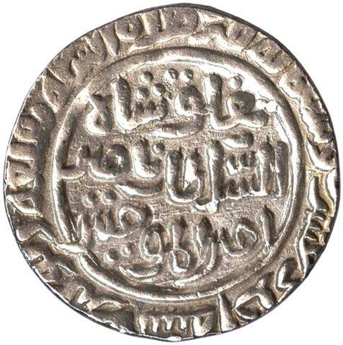 | Full Description: Delhi Sultanate, Ghiyath Al-Din Tughluq, AH 720-725, Silver Tanka, Qila 'Deogir, Obv: al sultan al ghazi ghiyath al dunya wal din abul muzaffar, Rev: Tuglaq shah al sultan nasir Amir ul mu'minin, 11g, 29.85mm, (G&G# D307), About Un-Circulated, Rare. | ||||
