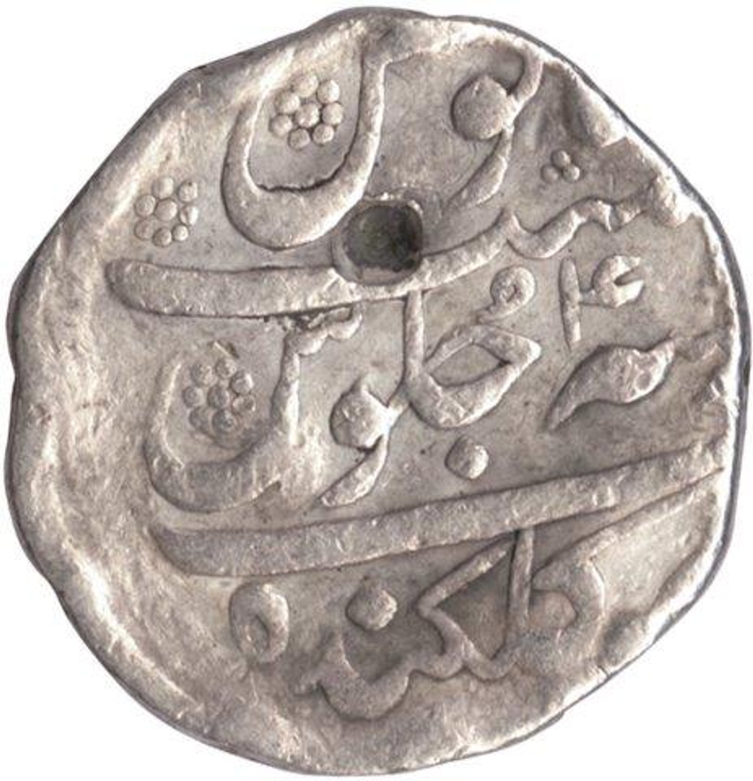 Aurangzeb Alamgir, Gulkanda, Silver Rupee, 4 RY, Obv: badr munir couplet, Rev: sana julus zarb, zulkunda, 2+1 testing markks, 11.50g, 22.33mm, (KM # 300.28, 2013 Edition), about fine.