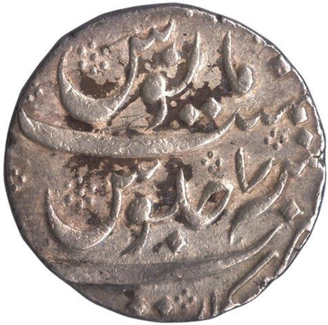 | Full Description: Farrukhsiyar, Arkat, Silver Rupee, AH 1130/7 RY, Obv: Sikka Zad Az Fazl-e-Haque Bar Seem-o-Zar. Badshah Behr-o-Bar Farrukhsiyar, Rev: Manus Memanat Sana Julus Zarb, 11.25g, 24.05mm (KM#377.10, 2013 Edition), About Very Fine. | ||||