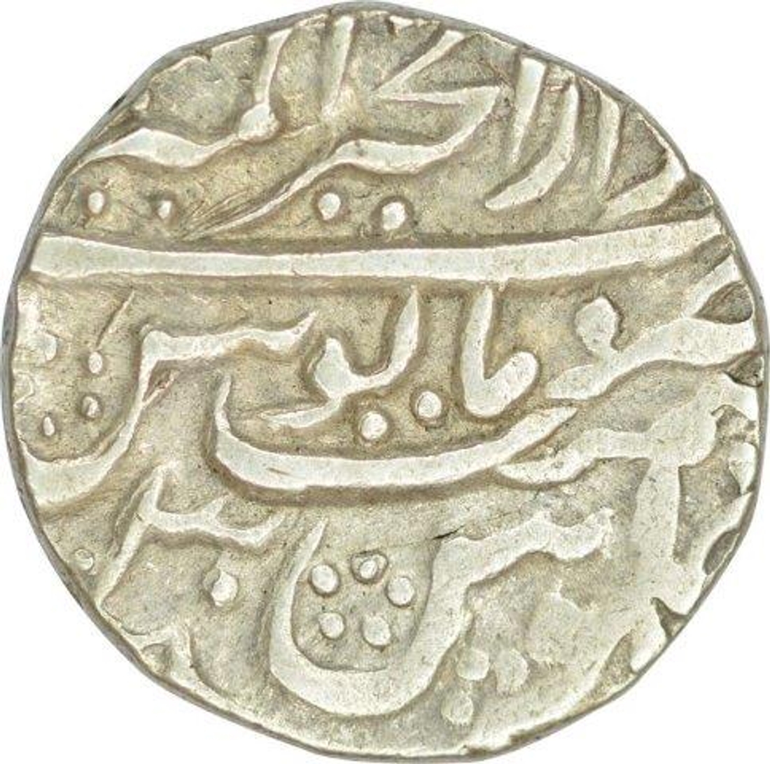 | Full Description: Muhammad Shah, Ajmer Dar-ul-khair Mint, Silver Rupee, 30 RY, Last Ruling Year of Muhammad Shah, Obv: sikka mubarak badshah ghazi muhammad shah, Rev: manus memanat, sana julus, zarb ajmer dar-ul-khair, Broad Flan, 11.40g, 22.08mm, (KM# 436.2,2013 Edition), about very fine. | ||||