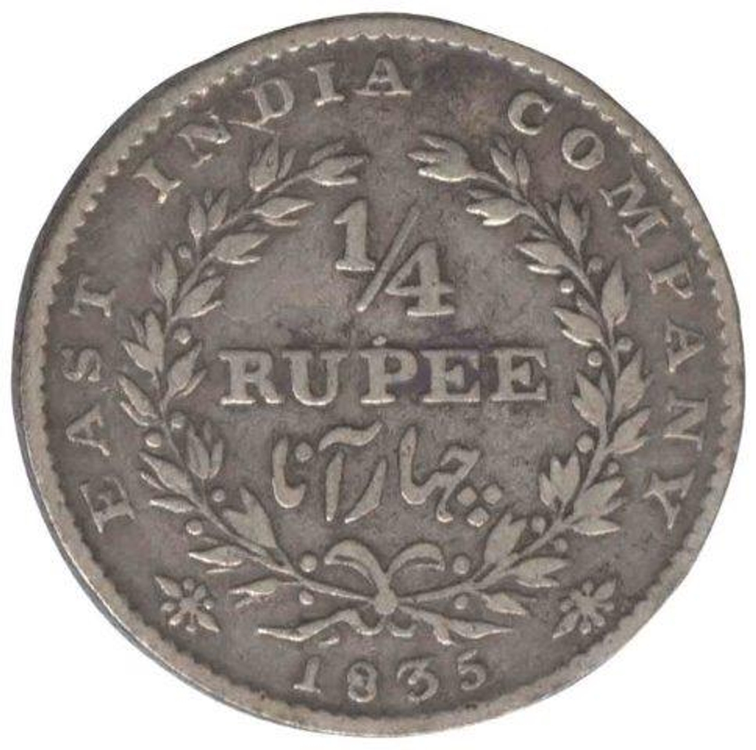 Lot # 562 - Silver One Fourth Rupee Coin of King William IIII of 1836.