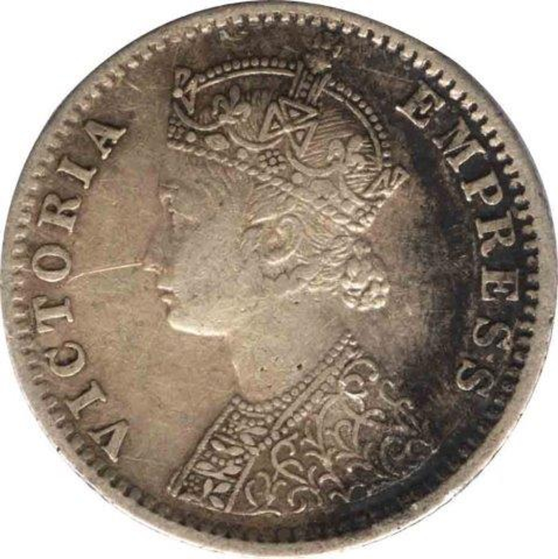 Lot # 567 - Silver One Fourth Rupee Coin of Victoria Empress of 1887.