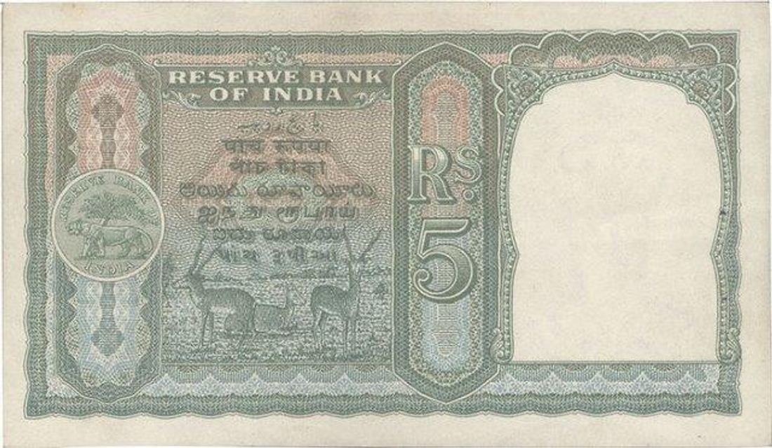| Full Description: King George VI, 1944, 5 Rupees, signed by C.D. Deshmukh, A Prefix, Serial No. in Black, S.No. A91 599036,