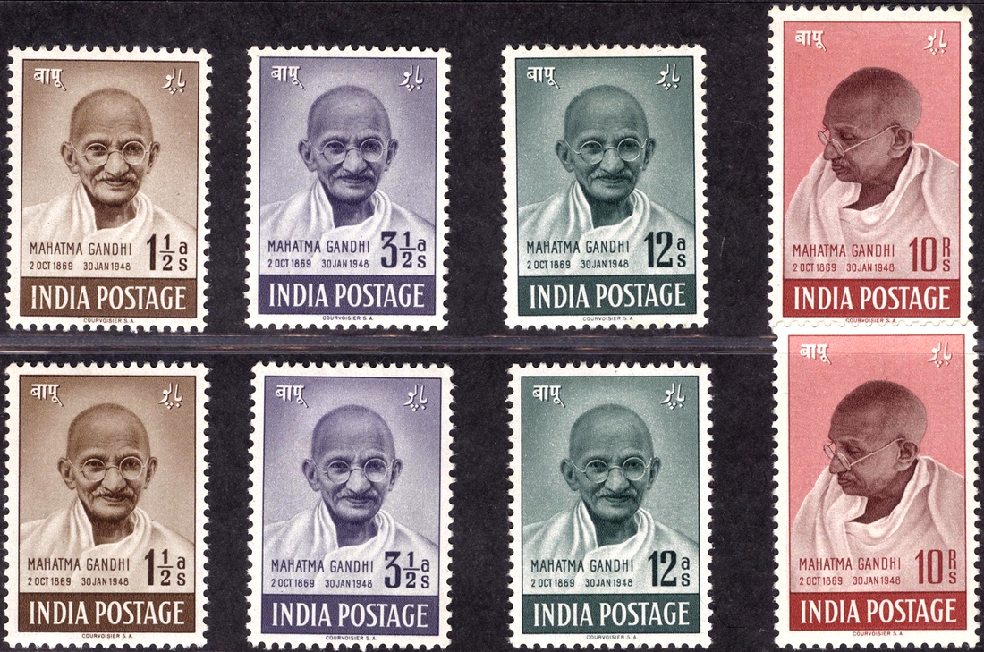 1948, Mahatma Gandhi, Set of 4 Stamps (2 Sets), 1½a, 3½as, 12as, & 10Rs, SG 305 to 308, White GUM, MLH, Rare.