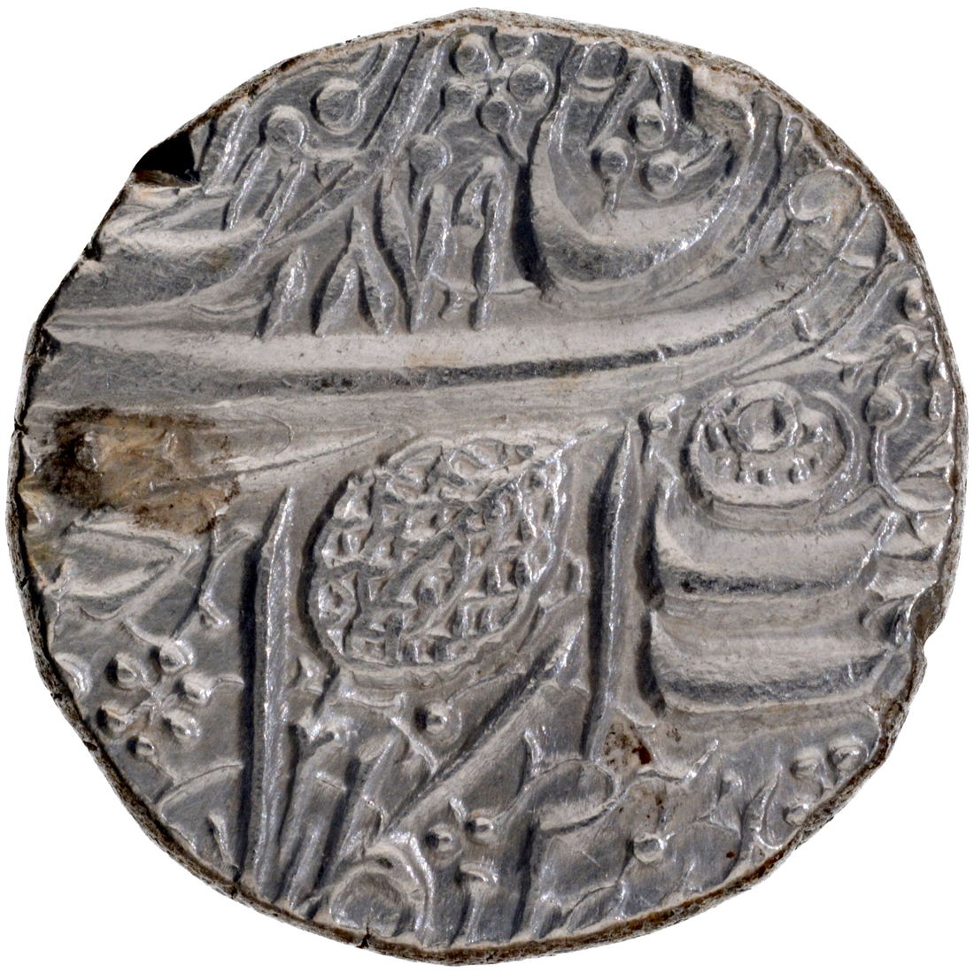 | Full Description: Sikh Empire, Sri Amritsar Mint, Silver Rupee, VS 1879, "Nanakshahi" Couplet, Obv: Persian legend "sikka zad bar har do alam fazal sachcha sahib ast, fateh gobind shah-e-shahan teghi nanak wahab ast", Rev: Persian legend "bakht akal takh", "zarb Sri Amritsar jiyo" with a leaf & the Vikram Samvat year, 11.04g, 23.5mm, (Gurprit # 1.39.01), about extremely fine, Scarce.