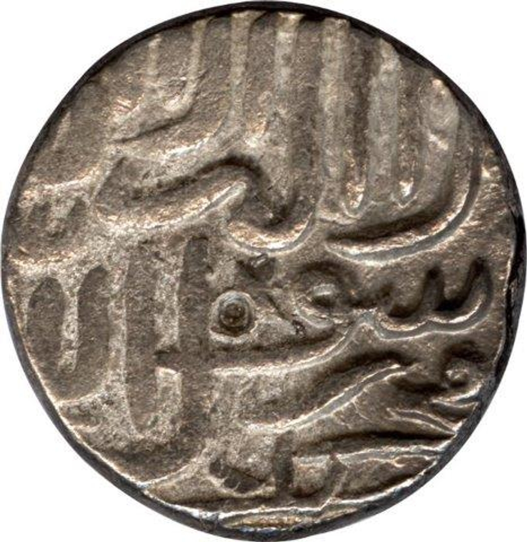 Akbar, Mandu Mint, Silver Reduced Tanka, 1+1 Testing Mark on Both Side, 7g, 17.52mm, about very fine.